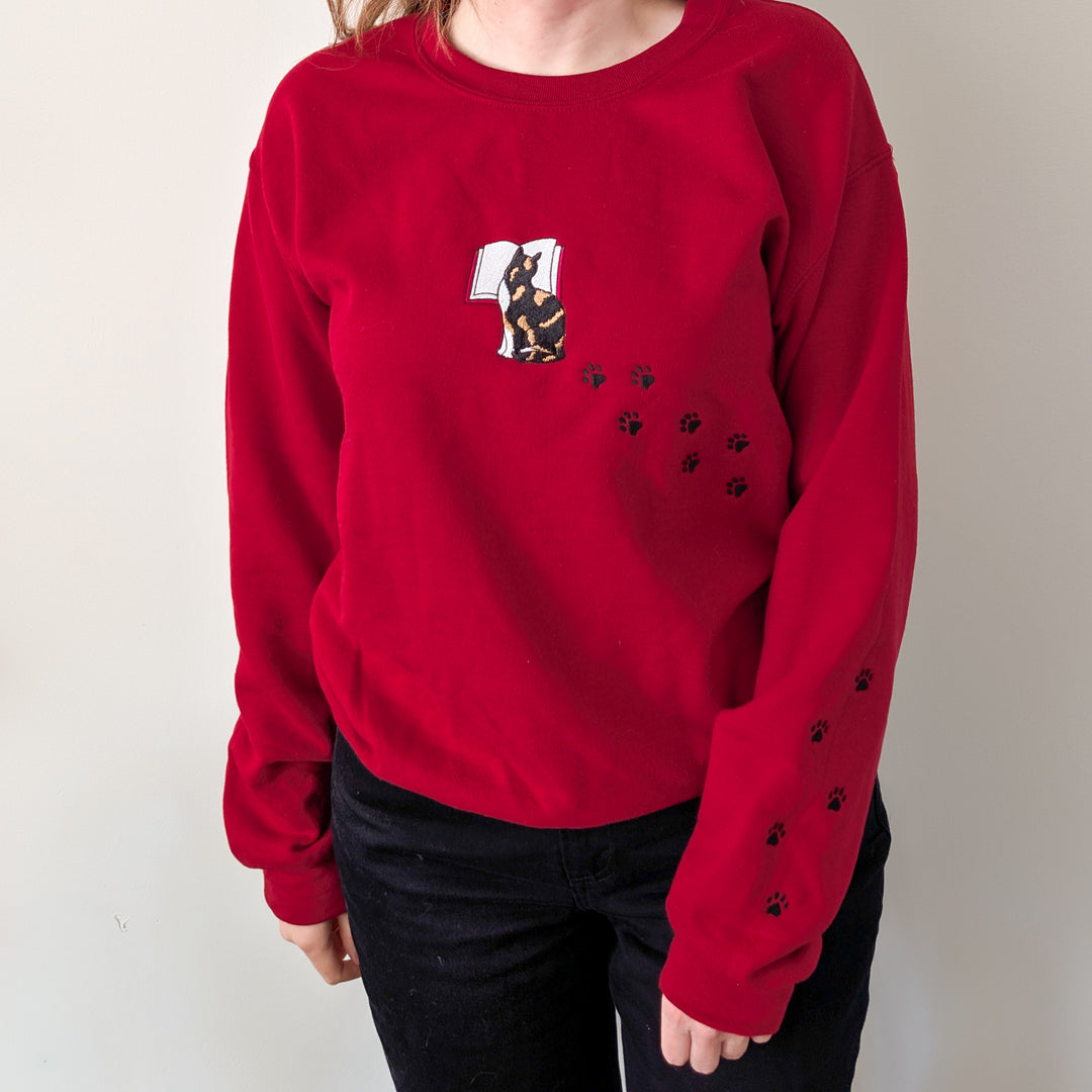 Cat Looking at Book Embroidered Sweatshirt